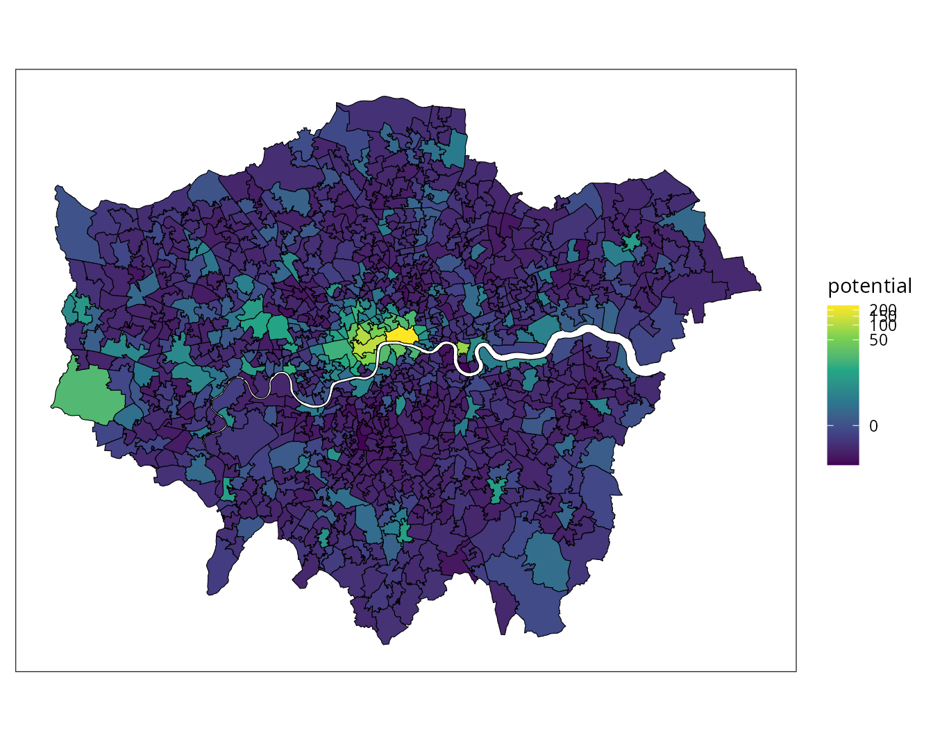 #> 6 E02000007 0.04170905Plot the obtained potential landscape